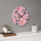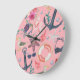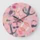 Nautical Watercolor Anchor Starfish Pattern Large Clock