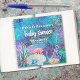 Having a boy or a girl is no matter with this baby shower theme that works for both. It has faux glitter and has watercolors, fish, corals, anchor and seashells. Blues and purples mostly. The back has ombre teal to aqua dots.