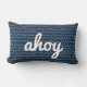 Nautical Wave Modern Coastal Ahoy Script Lumbar Pillow