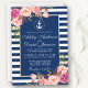 Nautical Wedding Blue Stripes Pink Floral Invite W