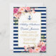 Nautical Wedding Blue Stripes Pink Floral Photo Invitation
