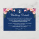 Nautical Blue Anchor and Gold, Watercolor Pink Blush Floral, Wedding Details Insert Card