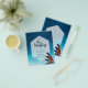 Striking watercolor sailing boat nautical ocean sea themed wedding invitation.