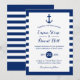Nautical Wedding Navy Blue Anchor & Stripes Invitation