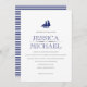 Nautical Wedding Navy Blue Boat With Sails Custom Invitation