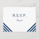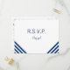 Cute wedding RSVP postcard template featuring navy blue stripes on front and anchor on back.