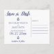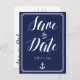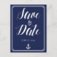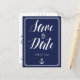 Nautical wedding Save the Date postcards with white frame, anchor and custom white text - you can change text, printed on navy blue background