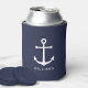 Nautical White Anchor and Custom Name on Navy Blue Can Cooler