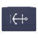 Nautical White Anchor and Custom Name on Navy Blue iPad Pro Cover