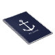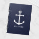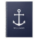 Nautical White Anchor and Custom Name on Navy Blue Notebook