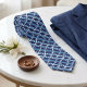 Unique neck tie with contemporary white nautical ship anchor pattern on a dark navy blue and cyan azure blue stripes pattern background. Created for the boat captain, lover of boating, sailing vacations or summer beach parties or weddings.