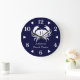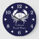 Nautical White Crab Navy blue Coastal Large Clock
