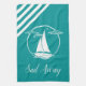 Nautical white sail boat/sail away/ silhouette kitchen towel