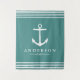 Nautical White Stripe & Anchor Teal | Personalized Tapestry