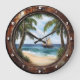 Bring the serene beauty of a tropical beach into your home with this unique decorative wall clock. Its rustic design features a tranquil landscape with swaying palm trees and a charming sailing boat on the ocean, evoking a sense of calm and relaxation. Perfect for coastal home decor, this timepiece blends vintage charm with an artistic touch, creating a captivating focal point in any room. Whether your style is boho or classic, this clock adds a timeless nautical vibe, making it an elegant accessory that transforms your interior into a peaceful seaside getaway.