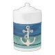 Teapot with a turquoise and blue distressed wood and white anchor design. Perfect for your coastal beach vacation home or rental or for your nautical/beach theme kitchen makeover.