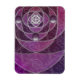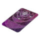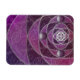A stained-glass-like design of silver spirals and shades of plum, over a repeating backdrop of spiral fractals. The silver spirals converge into a silver rose design, with round gems for accents.