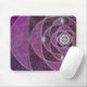 A stained-glass-like design of silver spirals and shades of plum, over a repeating backdrop of spiral fractals. The silver spirals converge into a silver rose design, with round gems for accents.