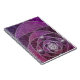 A stained-glass-like design of silver spirals and shades of plum, over a repeating backdrop of spiral fractals. The silver spirals converge into a silver rose design, with round gems for accents.