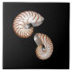 6" x 6" ceramic tile, black background with 2 beautiful nautilus seashells.