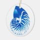 Digital sketch of a striped nautilus shell - deep cobalt blue and white shell against a white background