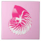 Digital sketch of a striped nautilus shell - deep fuchsia pink and white shell against a soft, ice pink background