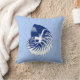 Digital sketch of a striped nautilus shell - dark navy blue and white shell against a light chambray blue background