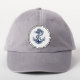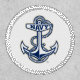 This design features a traditional anchor silhouette rendered in a deep navy blue, accented with a rich gold/tan outline. A heavy, textured rope in matching gold/tan with a navy blue outline is intricately coiled around the anchor's shank and stock. Across the top of the anchor, a banner shape in gold/tan with a navy blue outline prominently displays the word "NAVY" in bold navy blue letters. A small, five-pointed star sits atop the banner, adding a traditional naval element. The overall design evokes maritime strength, history, and the enduring symbol of the United States Navy.