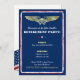 Do you need a classy invitation for someone you care about who's retiring from being an officer in the navy / naval air force? Here are some unique and patriotic retirement party invitations featuring a gold emblem of the naval air force (wings and anchor) that you can personalize! Input your own custom text for your party details, and even add a photo or more information on the back side of this card which depicts an American flag. Colors: red, white, blue and gold. Category: United States of America military retirement invitations and cards, stars and stripes.