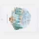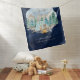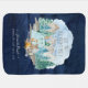 "Navy Adventure Begin Rustic Baby Boy Birth Stats baby blanket." Navy blue hand painted watercolor wood background for a modern yet rustic touch. Sweet pine forest is filled with animals including an owl, deer, bear, raccoon and hedgehog that are tent camping in the mountains. The message, "Let the adventure begin" in gray, textured typography and is combined with your baby boy's name, date, time, weight and length personalized. Art painted in watercolor by internationally licensed artist and designer, Audrey Jeanne Roberts, copyright