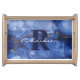 Navy Blue Agate Monogram and Name Marble Luxury Serving Tray