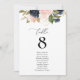 watercolor floral wedding seating chart with navy blue and blush pink flowers.