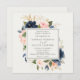 Plain white envelopes are included with paper invitations and will come to fit the invitation size you select. If you don’t need the envelopes, you may choose to not receive them by selecting the dropdown below "Envelopes" and choosing "None." If you’d like to have a design on your envelopes, you can browse all of these available envelopes to find the design that complements your Navy And Blush Florals Wedding Invitation.