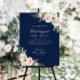 a modern navy blue and blush flowers with white script text. The text and colors on this sign poster can be edited.