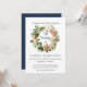 Navy and Blush Ivory Roses w Fern Wreath Wedding Invitation