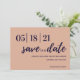 spread the news of your wedding date with this classy navy and blush pink save the date card. with a modern combination of bold type with script font this is on trend but also timeless