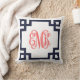 Navy and Coral Greek Key Script Monogram Throw Pillow