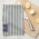 Navy And Cream Striped Pattern Monogrammed Kitchen Towel