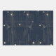 Starlit deco nights, gilt and dark navy. Two architectural patterns with celestial orbs, one peacock/fan/palm motif. Beautiful wrapping paper set for any stylish occasion.