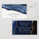 Navy blue and faux gold glitter agate stone business cards with elegant handwriting typography customizable to your specifications.