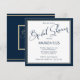 Plain white envelopes are included with paper invitations and will come to fit the invitation size you select. If you don’t need the envelopes, you may choose to not receive them by selecting the dropdown below "Envelopes" and choosing "None." If you’d like to have a design on your envelopes, you can browse all of these available envelopes to find the design that complements your Navy And Gold Elegant Bridal Shower Invitation.