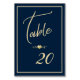 Navy and Gold Elegant Wedding Reception Table Numbers designed with gold colored text on a navy background. Each card includes the text: Number on front and reverse. To personalize, simply insert one number per table card ordered. This number will automatically repeat on the reverse side. Be sure to view the complete Navy and Gold Elegant Wedding Collection for matching cards and accessories.