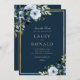lovely blue flowers with a gold frame and elegant text. The colors and text can be personalized.