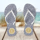 Custom printed flip flop sandals with a stylish modern Greek key pattern and your custom monogram or other text in a circle frame. Click Customize It to change text fonts and colors or add your own images to create a unique one of a kind design!