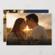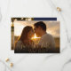 This elegant heart script photo save the date card features your photo and a script save the date above your names, date and venue. The reverse features an additional photo, message, and wedding website QR code on a navy blue background. Designed by Thisisnotme©