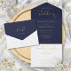 Navy And Gold Script Hearts Minimalist Wedding All In One Invitation