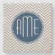 Navy and Gray Chevron Pattern Custom Monogram Stone Coaster
