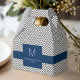 Navy and Gray Chevron Pattern Monogram Wedding Favor Boxes