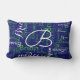 navy and green pattern of names lumbar pillow