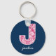 Navy and Hot Pink Damask Pattern Monogram Letter J Keychain